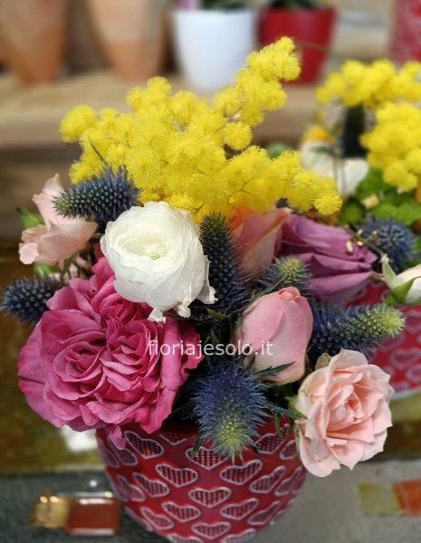 Diametro vaso cm 12 h 15, con fiori diam 15 h <20