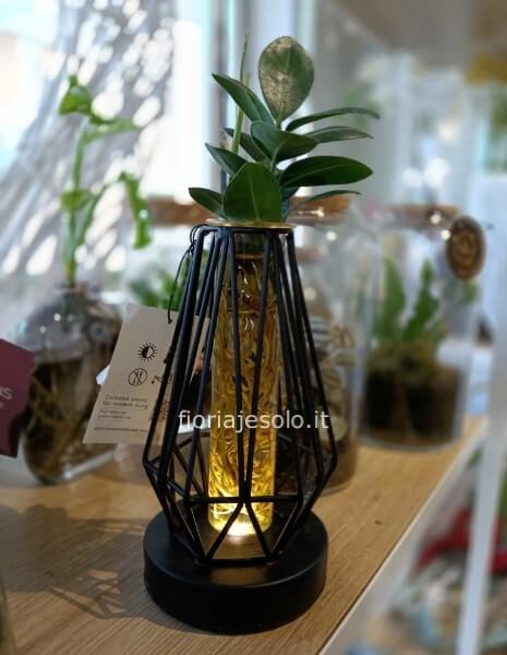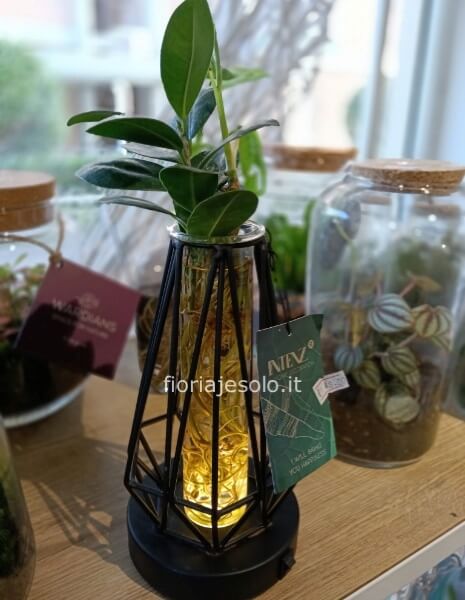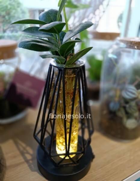 Pianta idrocoltura con luce a batteria "oggetto design" cm 20 completa cm 25 base cm 10