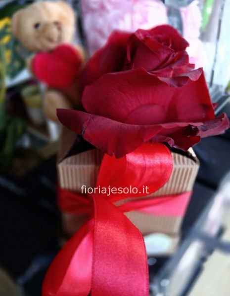 Rosa rossa con "sprizzamore" in scatolina 8x8xh15