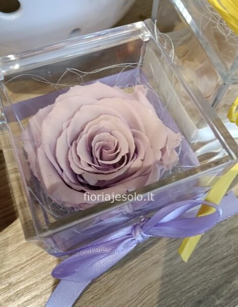 “RoseCube” Rosa stabilizzata in cubo trasparente cm 8x8x8
