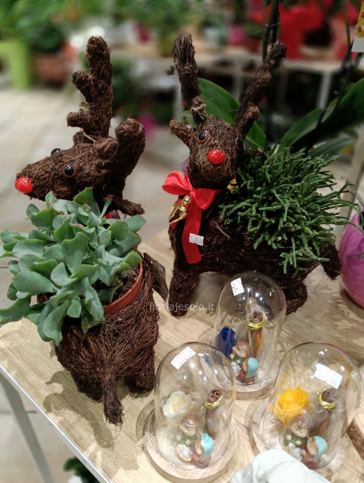 Rudolf la Renna di Babbo Natale cm 30x40h con pianta succulente per creare l'atmosfera magica