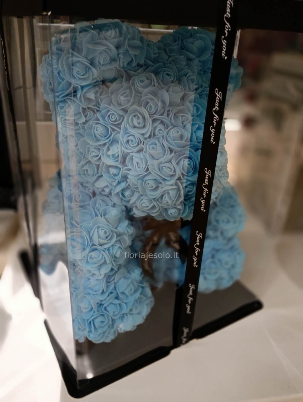 Lightbluebear di roselline in fommy con scatola trasparente. Misure 40h x30
