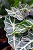 E' una pianta perenne a ciuffo, con grandi foglie ovali, con le venature piu' chiare, screziate in viola e similbronzo. I fiori sono riuniti in infiorescenza a spata ma che di rado riescono a fiorire se coltivate in vaso.