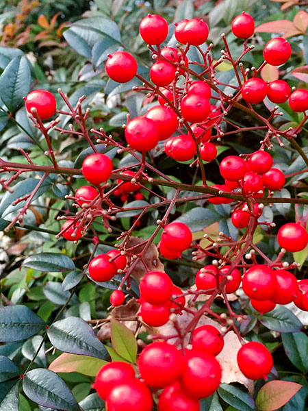 E' un arbusto sempreverde eretto. Ha foglie lucide con margine seghettato, lanceolate. Ha una infiorescenza a forma di pannocchia con fiori profumati bianchi a forma di stella che sbocciano a maggio/giugno. I frutti sono bacche rotonde rosse che resistono sui rami per molto tempo in contemporanea con i fiori che crescono nella parte piu' alta e quindi giovane, della pianta.