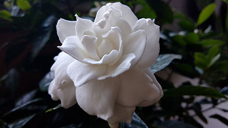 Arbusto sempreverde, ma anche spogliante. E’ caratterizzato da fiori primaverili bianchi, piu' o meno garndi a seconda della varieta', che necessitano di una temperatura costante di almeno 14 gradi. Il fogliame e' verde scuro, lucido e leggermente ceroso, di forma un po' lanceolata, robuste singole o riunite in gruppi. Le gardenie hanno un portamento arrotondato con ramificazioni molto dense e in in alcune varieta' una fioristura abbondante se pur delicata. I fiori sono profumatissimi ma in appartamento tendono immediatamente a scurire e morire. Vuole aria e non sole diretto.