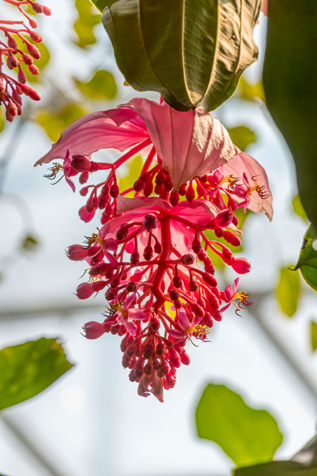 Originaria delle Filippine, nasce spontaneamente nelle foreste tropicali dove preferisce posizioni ombreggiate. Possiede delle grandi foglie verdi abbastanza rigide ma delicate con belle venature. Dall'apice delle foglie si sviluppano steli sui quali nascono bellissimi fiori di colore rosa delicato. Il fiore vero e proprio e' coperto da brattee di un rosa intenso.